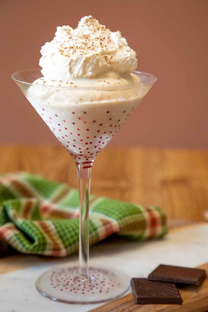 Malt, and malt products, likewise are well known for their health benefits. Exactly what these are is not scientifically proven, but there are no doubt very valuable vitamins and minerals in malt, being derived from malted barley, a whole grain with natural enzymes. There are various malt products suitable for this cocktail. Thick malt syrup can be drizzled over the cream, or a product such as Ovaltine can be dusted over the tip instead of, or along with, the grated nutmeg. This will give a crunchy quality to the drink which is not to everyone’s taste.